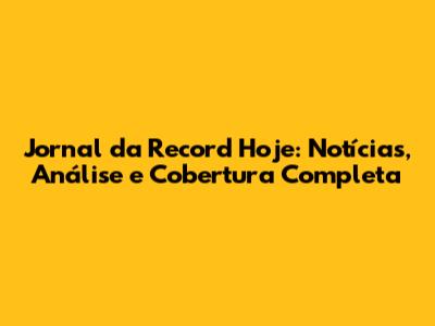 Jornal Da Record Hoje: Notícias Completas E Análise