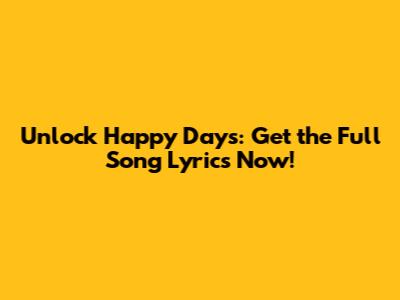 Unlock Happy Days: Get The Full Song Lyrics Now!