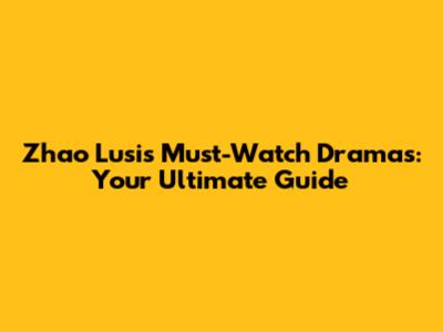 Zhao Lusi's Must-Watch Dramas: Your Ultimate Guide
